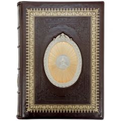 Оформление: медь, серебро, золото, кожаный переплет ручной работы