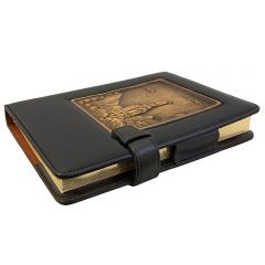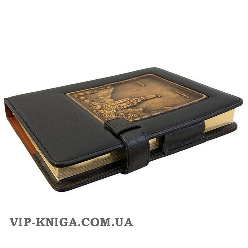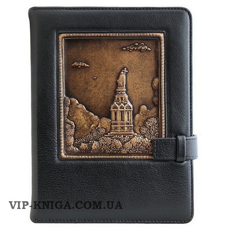 Кожаный ежедневник Владимирская Горка.На лицевой стороне находится изображение Владимирской Горки .Изделие выполнено по технологии объемного тиснения.