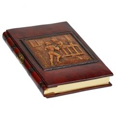 Дневник ручной работы, изготовлен из натуральной кожи. На обложке изображена романтическая встреча Ромео и Джульетты под балконом поместья Капулетти. Под покровом ночи молодые люди дают друг другу клятву любви и верности.