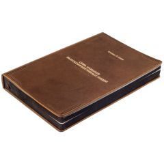 Оформление: цельнокожаный полужесткий переплет «Брадель», ручной работы, изготовлен из натуральной кожи POSITANO Vegetale производства итальянской кожевенной фабрики. Обложка книги оформлена комбинацией глубокого блинтового и рельефного золотого тиснения, с использованием фольги “Luxor 240”. Обрез блока вручную шлифован и окрашен.