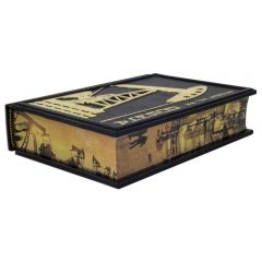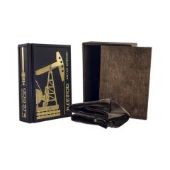 Оформление: составной переплет «Брадель», ручной работы, выполнен из натуральной кожи «Robbat Nero» производства итальянской кожевенной фабрики «Carisma». Обложка книги двухуровневая, оформлена рельефным золотым тиснением (с использованием фольги «Luxor 240») и накладными декоративными латунными элементами. Обрез выполнен в уникальной технологии художественной запечатки золотой основы.