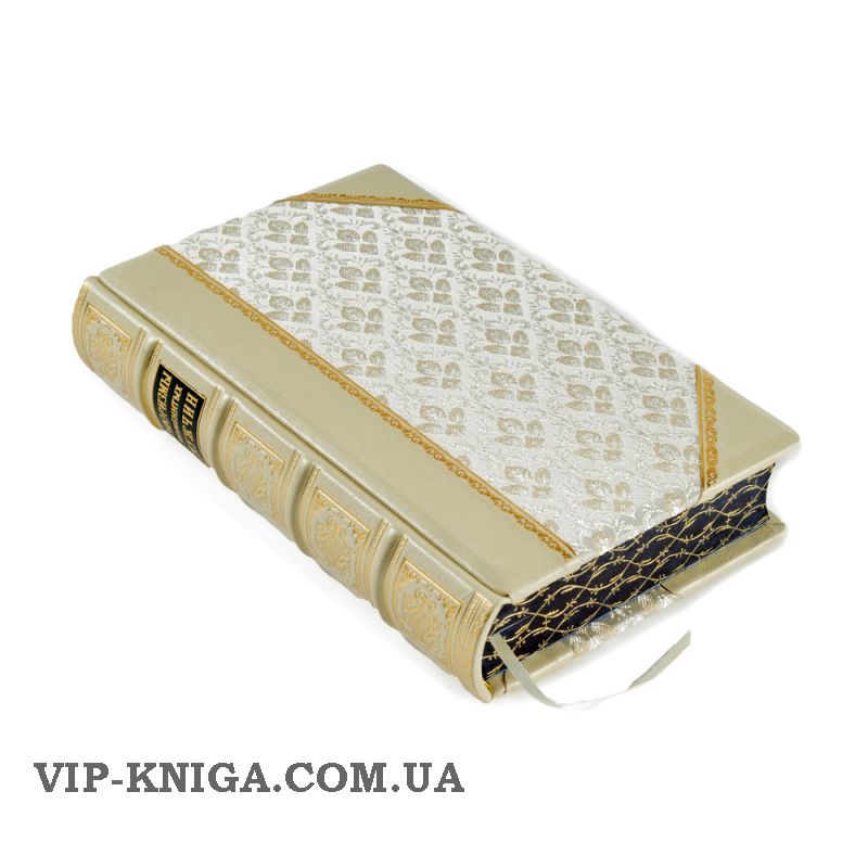 Каждая книга в кожаном футляре. Сертификат. Обложка: натуральная кожа, ткань, золотое тиснение, цветной вручную расписанный золотом обрез.
