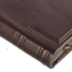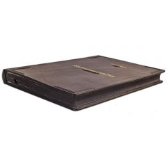 Оформление: цельнокожаный полужесткий переплет «Брадель», ручной работы, изготовлен из натуральной кожи POSITANO Vegetale производства итальянской кожевенной фабрики. Обложка книги оформлена комбинацией глубокого блинтового и рельефного золотого тиснения, с использованием фольги “Luxor 240”. Обрез блока вручную шлифован и окрашен.