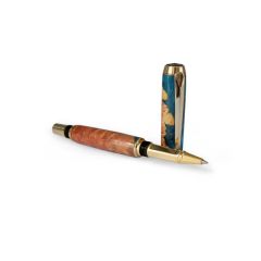 Корпус (стабилизированный кап клена+ смолы ), фурнитура под "золото". Длина-129 мм, Вес-34 гр, цвет чернил в ампуле-черный.