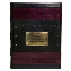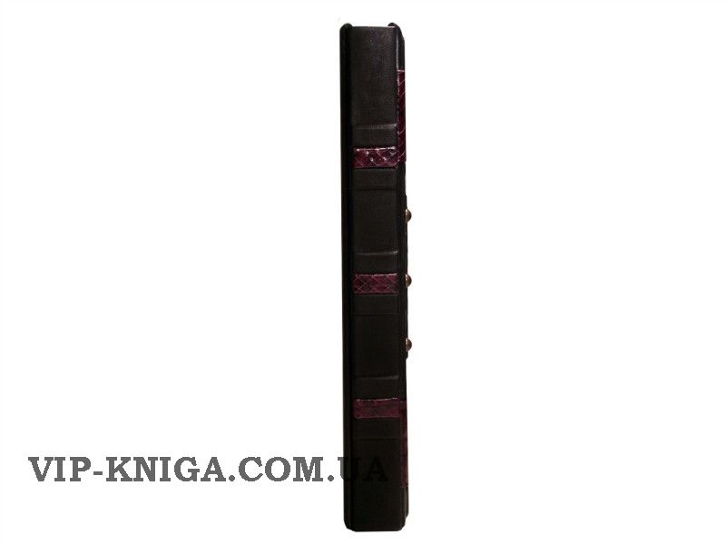 Оформление: Кожаный переплет ручной работы выполненный из лучшей натуральной кожи, производство Италия и натуральной кожи Питона . Обложка книги оформлена объемными узорами ручного тиснения, вставкой из латуни, и 9 холитенов.