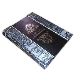 Оформление: Французский переплет ручной работы, выполнен из комбинации натуральных кож (кожа «Plonge Brown», кожа «Argento dinosauro» производства итальянской кожевенной фабрики «Claudio». Обложка книги двухуровневая оформлена рельефным золотым тиснением (фольга «Luxor 240»), вставками из плетенного кожаного шпагата (цвет «Bronze»), латунными холитенами, количеством 12 шт. Обрез полирован и окрашен вручную (цвет «Bronze»). Тираж 25 номерных экземпляров. Сертификат. Парчовый чехол.