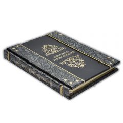 Оформление: Французский составной переплет ручной работы, выполнен из комбинации натуральных кож (кожа «Plonge Brown», кожа «Argento dinosauro» производства итальянской кожевенной фабрики «Claudio». Обложка книги двухуровневая оформлена рельефным золотым тиснением (фольга «Luxor 240»), вставками из плетенного кожаного шпагата (цвет «Bronze»), латунными холитенами, количеством 12 шт. Обрез книги вручную полирован и позолочен сусальным золотом. Тираж 10 переплетных экземпляров. Сертификат. Подарочный чехол.