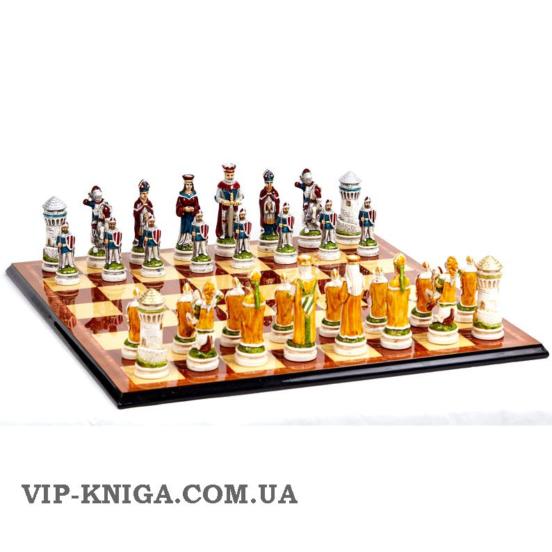Фигуры выполнены из высококачественного полистоуна - материала, по своим характеристикам имитирующему слоновую кость. Шахматные фигуры расписаны вручную, краски закреплены при помощи специальной химической обработки, которые делают покрытие практически не подверженным времени.