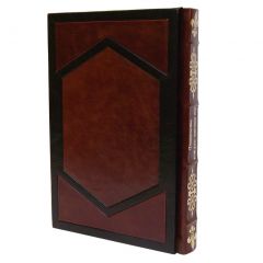 Оформление: кожаный переплет ручной работы, выполнен из лучшей натуральной кожи («Notingen Cnoco» и «Plonge Braun») производство Италия. Обложка книги и корешок оформлен рельефным золотым тиснением (фольга ), узорами ручного тиснения и латунными халитенами общин количеством 16 шт. Форзац «Majestik medal bronze» производство FAVINI N.V. Голландия. Французский составной переплет. Сертификат. Бархатный чехол.