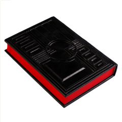Оформление: Переплет французкий цельнокожаный, ручной работы. Кожа цвет: "эбенового дерева", а также комбинация из кожи "алого" цвета (Италия). Рамка с орнаментом, название - гравировка цвет "золото" и "серебро". Каптал шелковый, ручного плетения. Форзац составной. Обрез полированный, окрашенный вручную, цвет "алый". Техники в изготовлении переплета: гравировка, высокий рельеф и тиснение по коже.