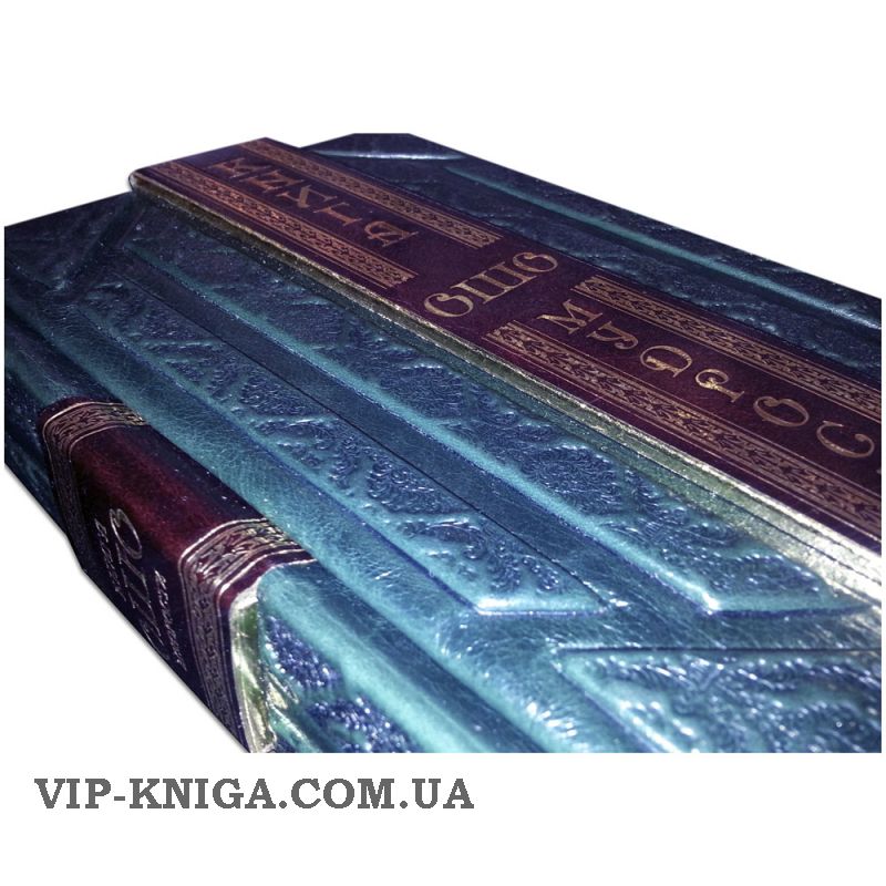 Оформление: французский составной переплет ручной работы выполнен из комбинации натуральных кож ( кожа теленка «Smeraldo scuro», кожа «Robbat wisky» производства итальянской кожевенной фабрики «Carisma»). Обложка книги оформлена комбинацией многоуровневого объемного тиснения: рельефного золотого, c использованием фольги «Luxor 240» и глубокого блинтового. Обрез вручную полирован и позолочен сусальным золотом.